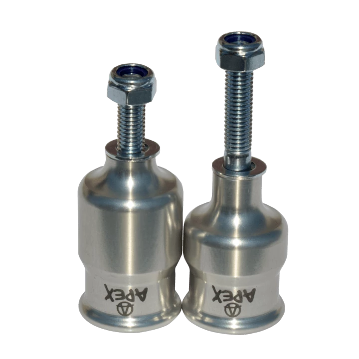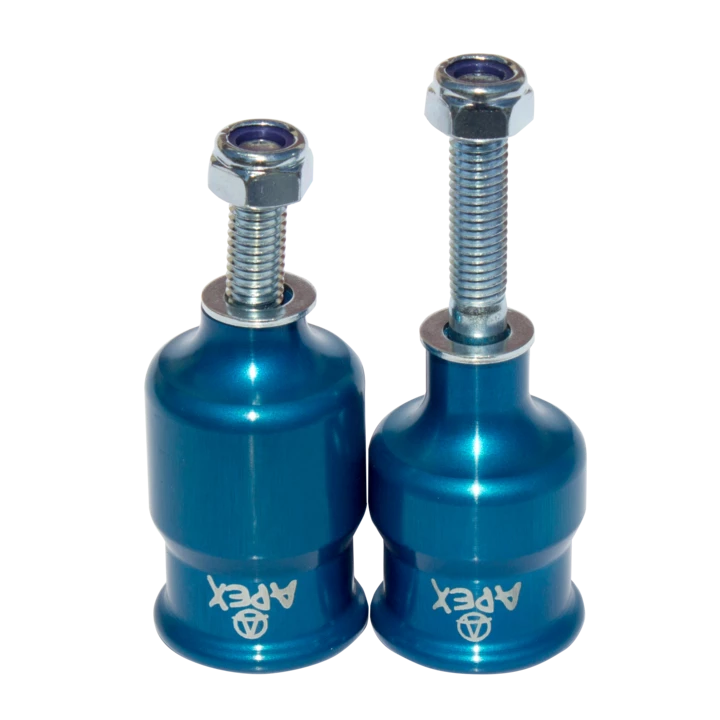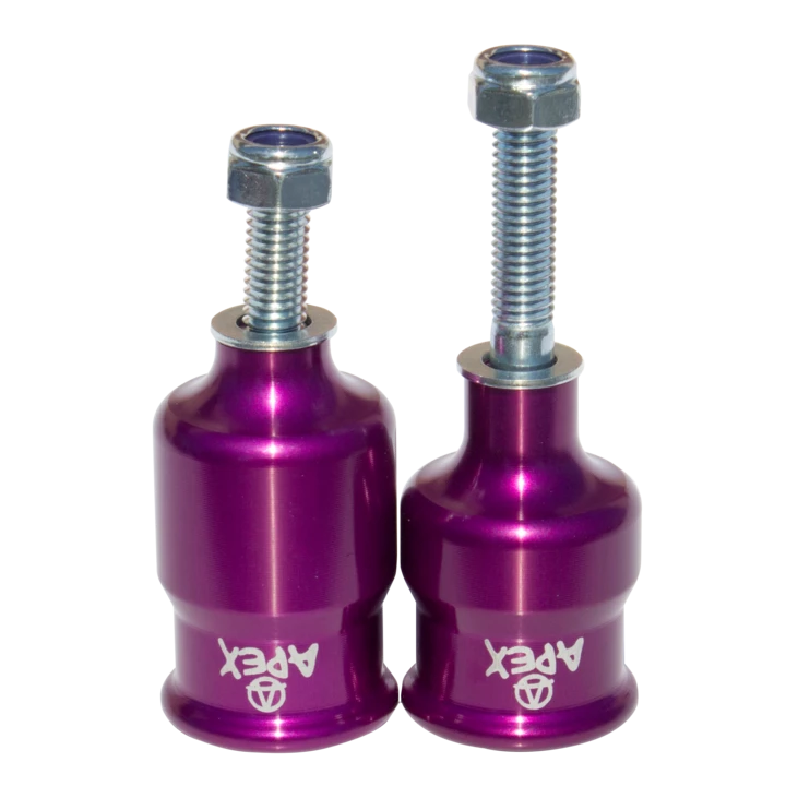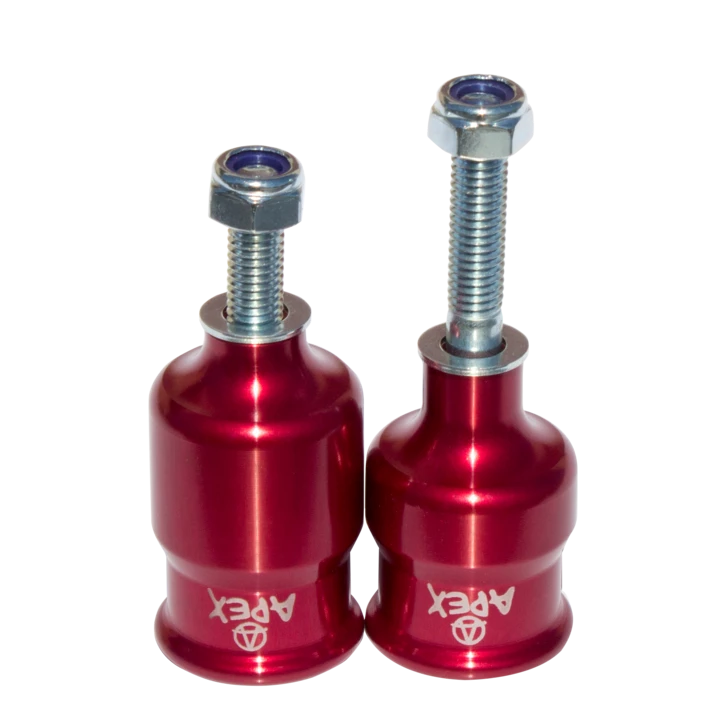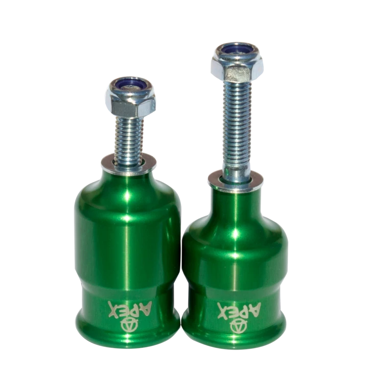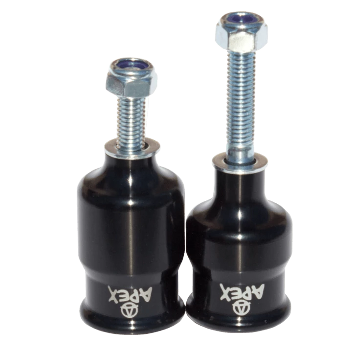 The pegs are made from Apex Australian-made aluminum, and come with high tensile steel bolts to fit onto most scooter decks and forks.