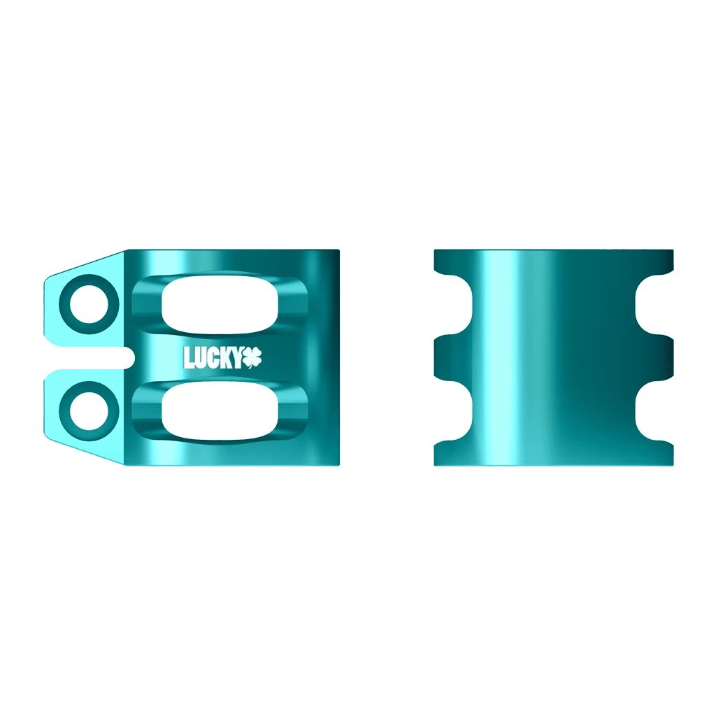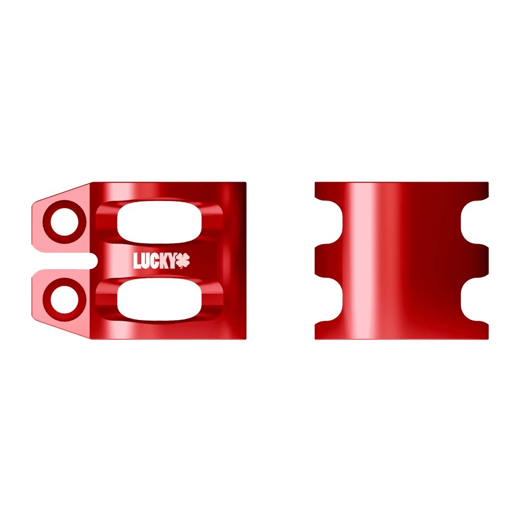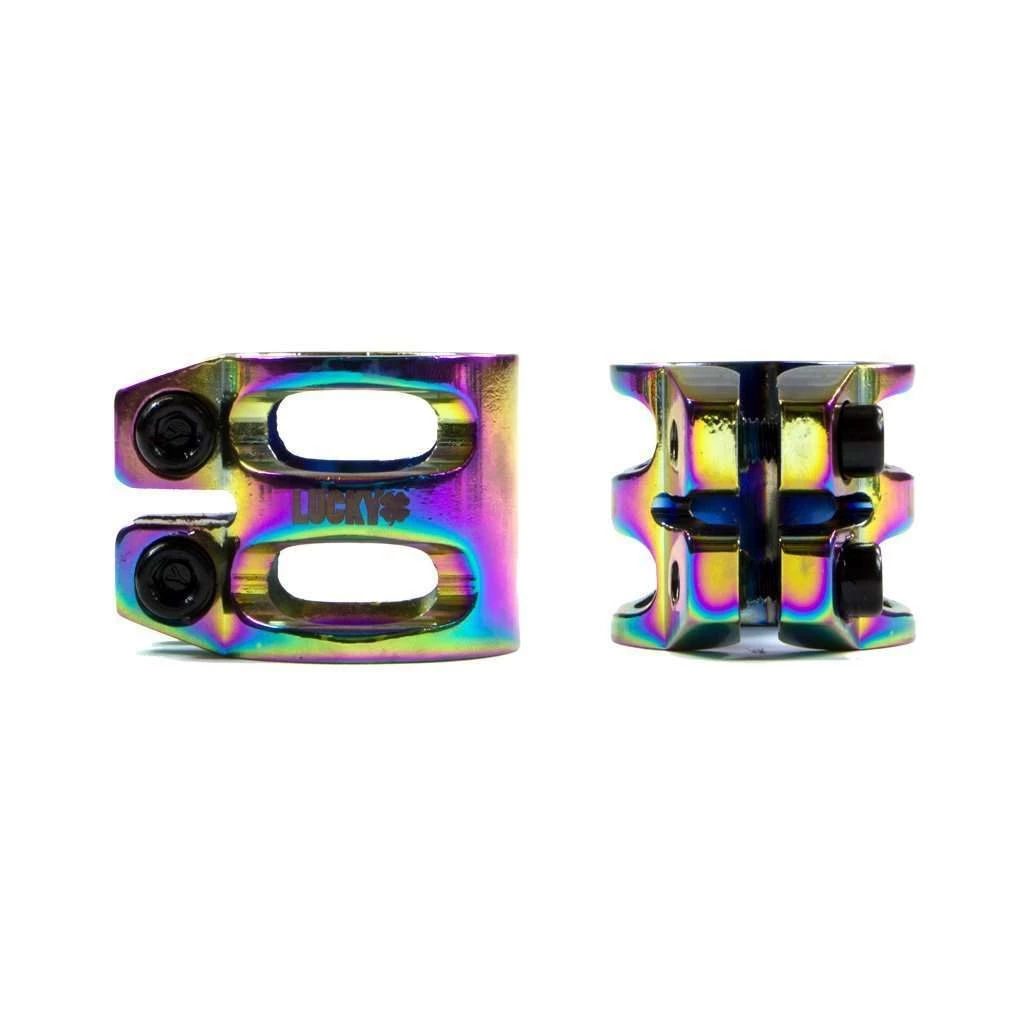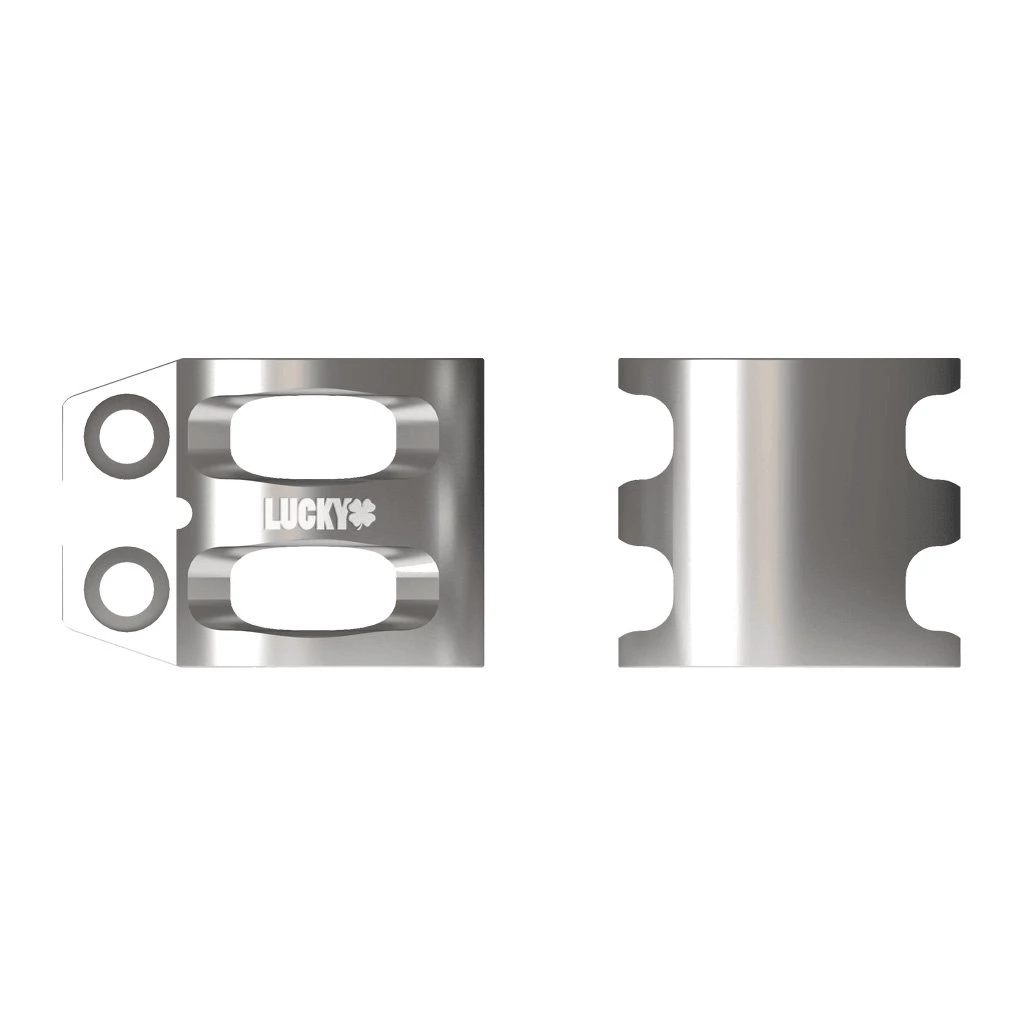 The Lucky 2018 DUBL™ Clamp is a lightweight and aesthetically plesent designed pro scooter clamp. Lucky started with the best 6000 series aircraft aluminum and CNC machine it to final specs. Lucky drilled the bolt holes extra deep to avoid stripping and use top of the line hardened bolts.