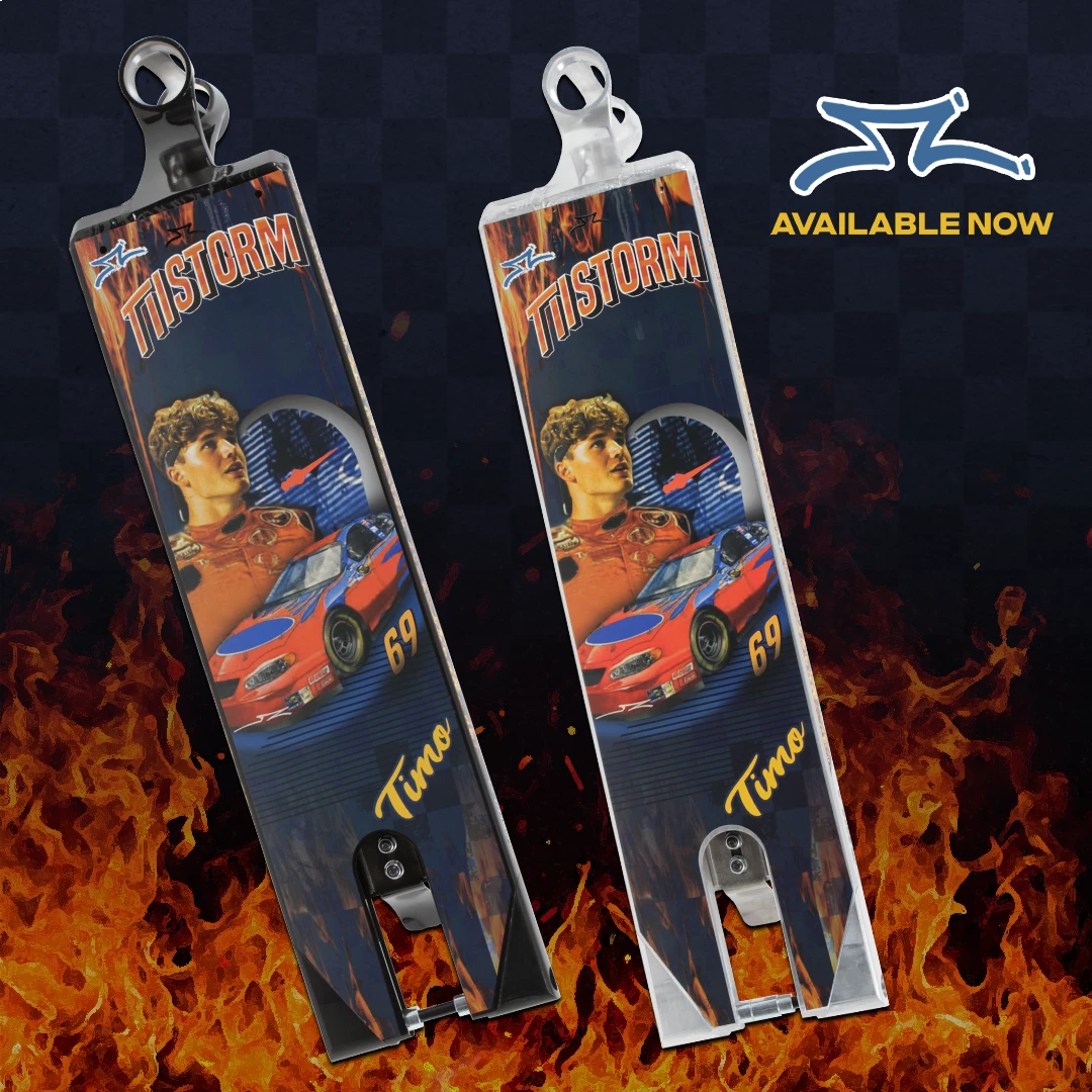 Ladies & Gentlemen start your engines! The all new Timo Sturmlin signature deck has arrived. Timo’s deck features a new headtube design that allows for maximum foot space and increased noseblunt/crook room. Available in two widths, 5.8 wide x 21.5″ and 22″ long and 4.8″ wide x 20.5″ long, with the 5.8” deck coming with aluminum plugs for true boxed ends. This deck is also 12 STD / 30 x 125 mm wheel compatible with an optional axle/spacer conversion kit.