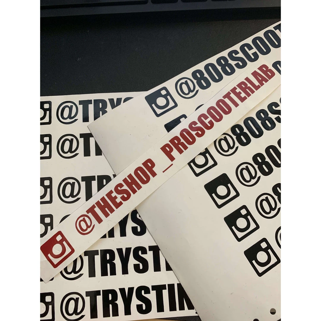 Get your Custom Vinyl Instagram Stickers for your helmet, car, or scooter! Â All you have to do is choose the color and add your Instagram name in the notes section before you checkout. Â